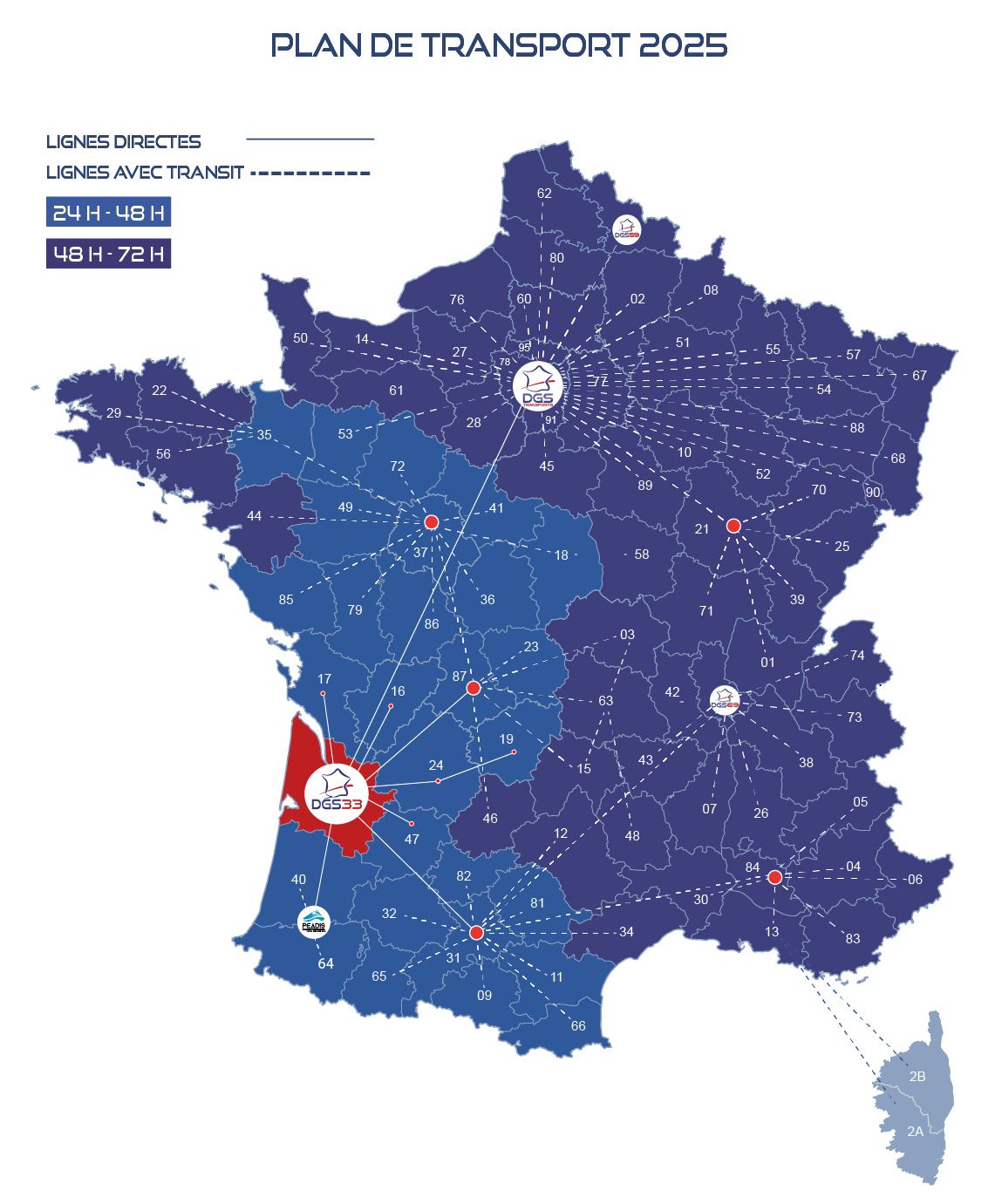 En toute transparence, nous vous présentons ici les plans de transport que nous exploitons pour vos livraisons.